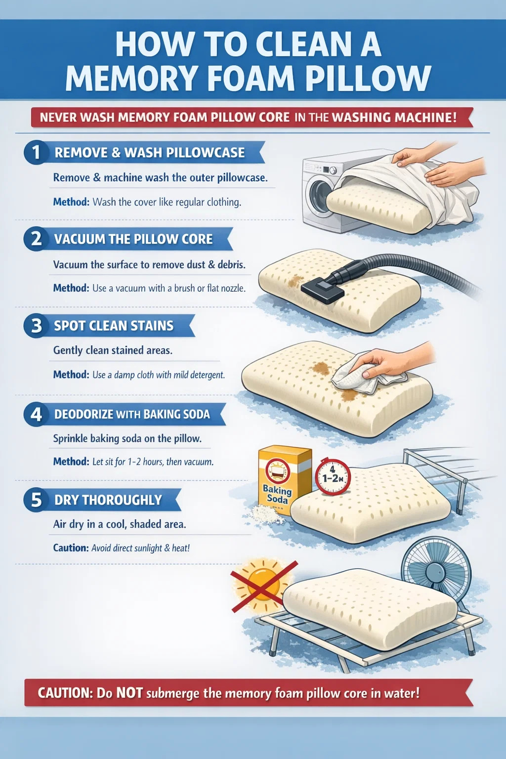 Najważniejszy punkt: Absolutnie nie wkładaj rdzenia poduszki z pianki memory do pralki!