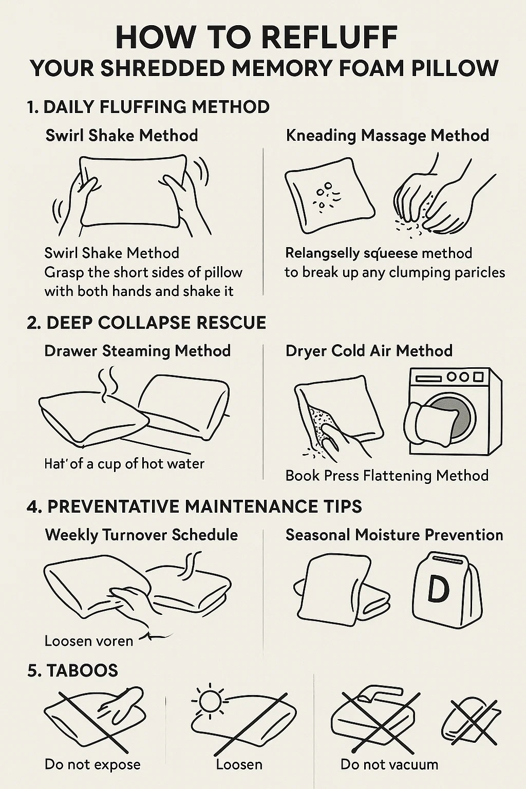 Sezonowa zapobieganie wilgoci: w porze deszczowej owinąć poduszkę w torbie dehumidifier i przechowuj przez 2 godziny (aby zapobiec wchłanianiu wilgoci i lepkiej).